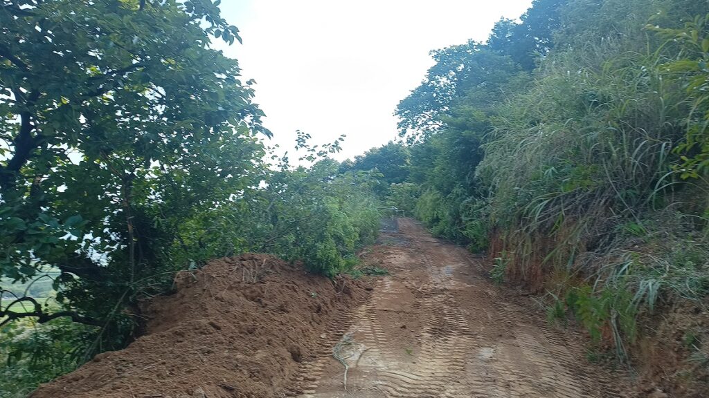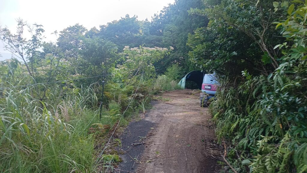 今日は、西に延びた公衆道路の先端、頂上近くに小屋(ハウスにシートを張った)があり、その途中の土砂の撤去作業を完了しました。