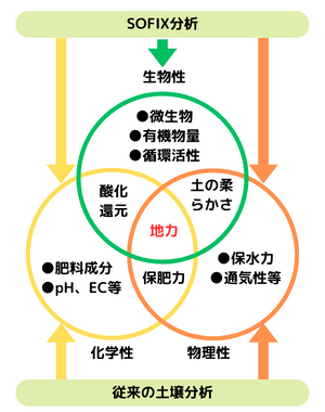 図1 土壌の生物、化学性、物理性とSOFIXとの関係